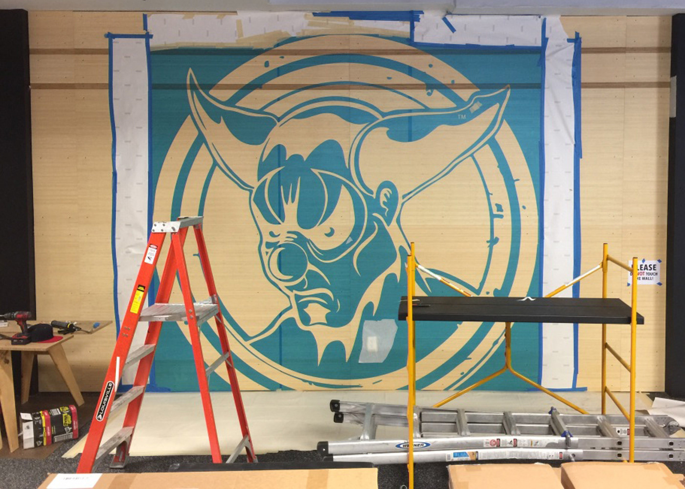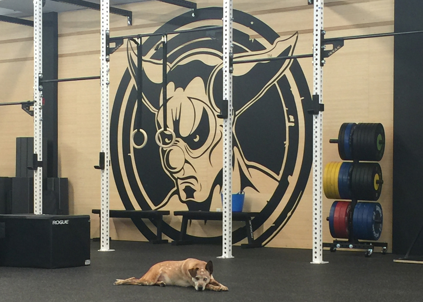 CrossFit Head Quarters Pukie mascotĀ in remodel Gym